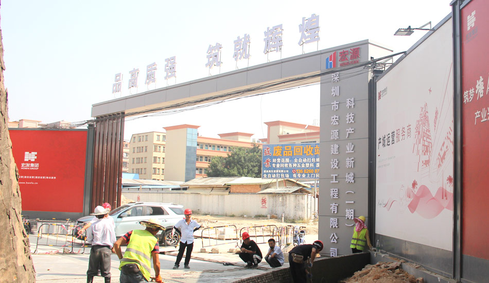 當前位置:首頁>案例中心>工地大門圍擋>東莞塘廈科技新城-深圳宏源建設項目工程施工工地大門案例