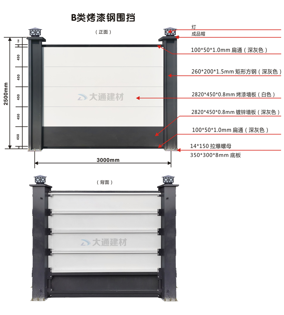 深圳市大通建材生產(chǎn)批發(fā)的B類鋼圍擋烤漆款 安全穩(wěn)固——進(jìn)一步提升材質(zhì)的剛度和結(jié)構(gòu)可靠性等標(biāo)準(zhǔn),推薦使用鋼結(jié)構(gòu)圍擋,選擇可靠度高的結(jié)構(gòu)形式,增強(qiáng)使用安全性能和防御臺(tái)風(fēng)的能力。