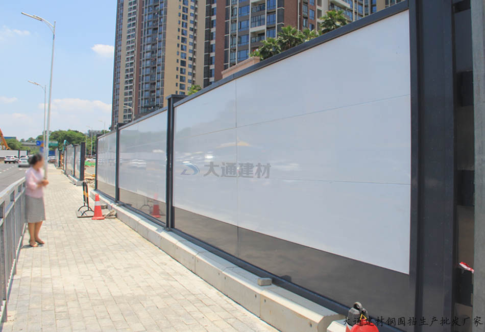 深圳市大通建材生產銷售適合佛山圍擋標準的裝配式A類烤漆鋼結構圍擋,經過高溫烤漆處理,具有不易生銹腐蝕,能耐日曬雨淋,耐候性佳,減少圍護成本,美觀環保等特點,適合房地產建筑施工工程使用。更多詳情請致電梁先生13826562448