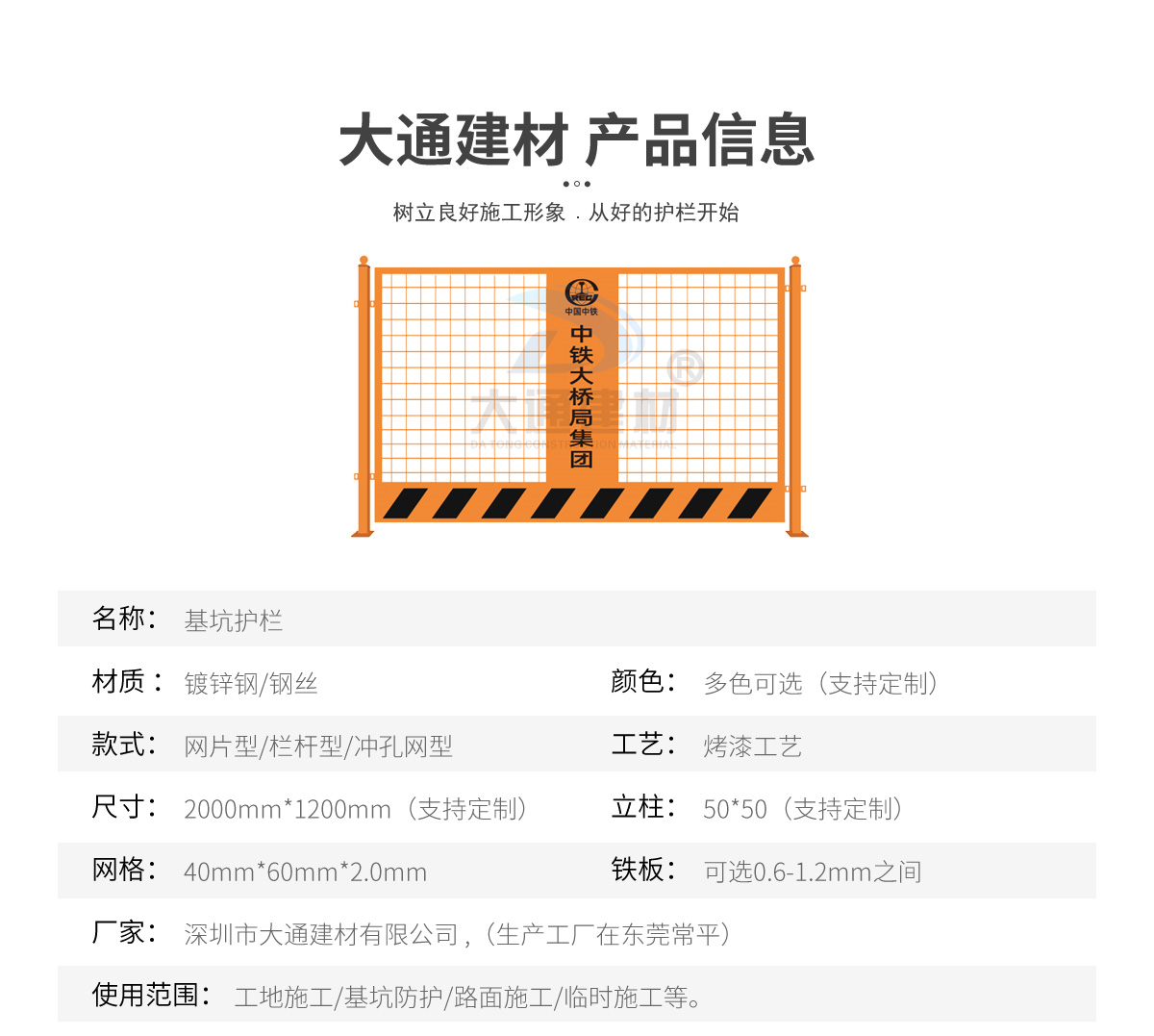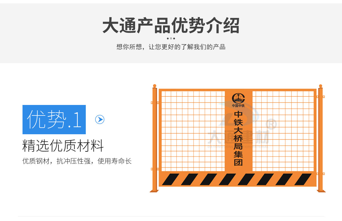 深圳市大通建材有限公司是一家集研發、生產、安裝、服務于一體的綜合性圍擋廠家,公司主營產品鋼圍擋、鋼結構圍擋、PVC圍擋、施工圍擋、市政圍擋、工地圍擋、烤漆鋼圍擋,官網:http://www.i121.cn/ ,銷售熱線:138 2656 2448